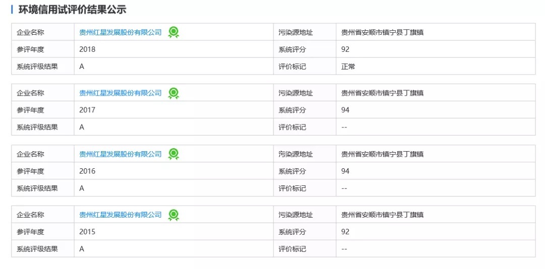 紅星發展連續四年獲評貴州省生態環境信用等級A類評價
