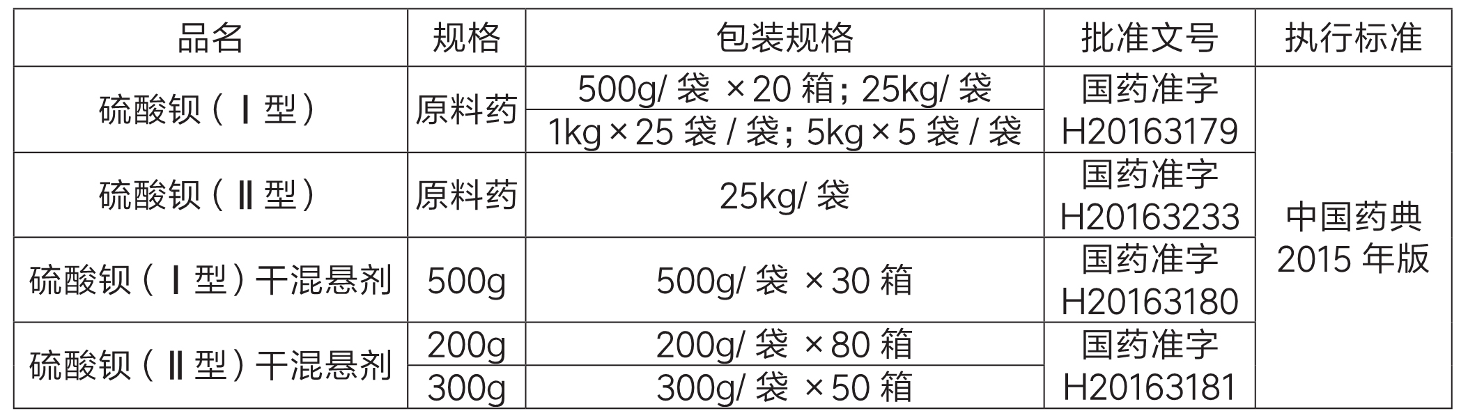 司藥用硫酸鋇品種有: